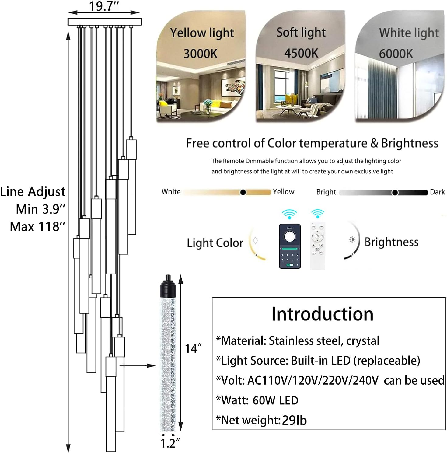 12-Lights Chandelier LED Dimmable Chandeliers for Entryway Flush Mount Ceiling Pendant Light Fixture Crystal Chandeliers for Living Room Black Finished Lighting Modern High Ceiling Chandelier
