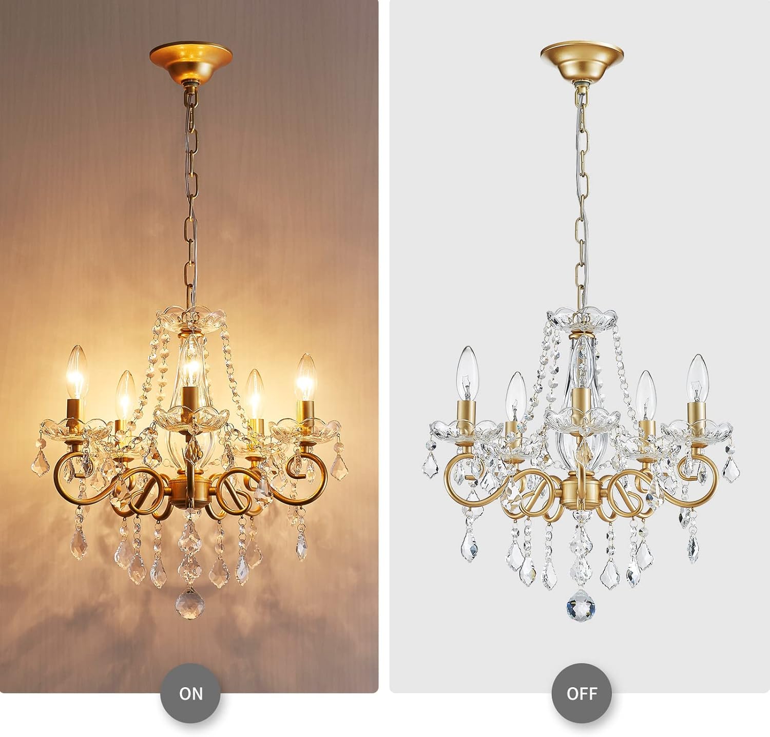 ANJIADENGSHI Mini Crystal Chandelier K9 Crystal Lighting Chandelier for Living Room 5 E12 Bulbs High 16.5 in x Diameter 16.9 in, Golden