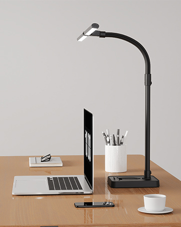 LED Desk Lamp for Home Office, Double Head 24W with Base, Architect Light 5 Lighting Brightness Flexible Gooseneck Table Reading Study, Black
